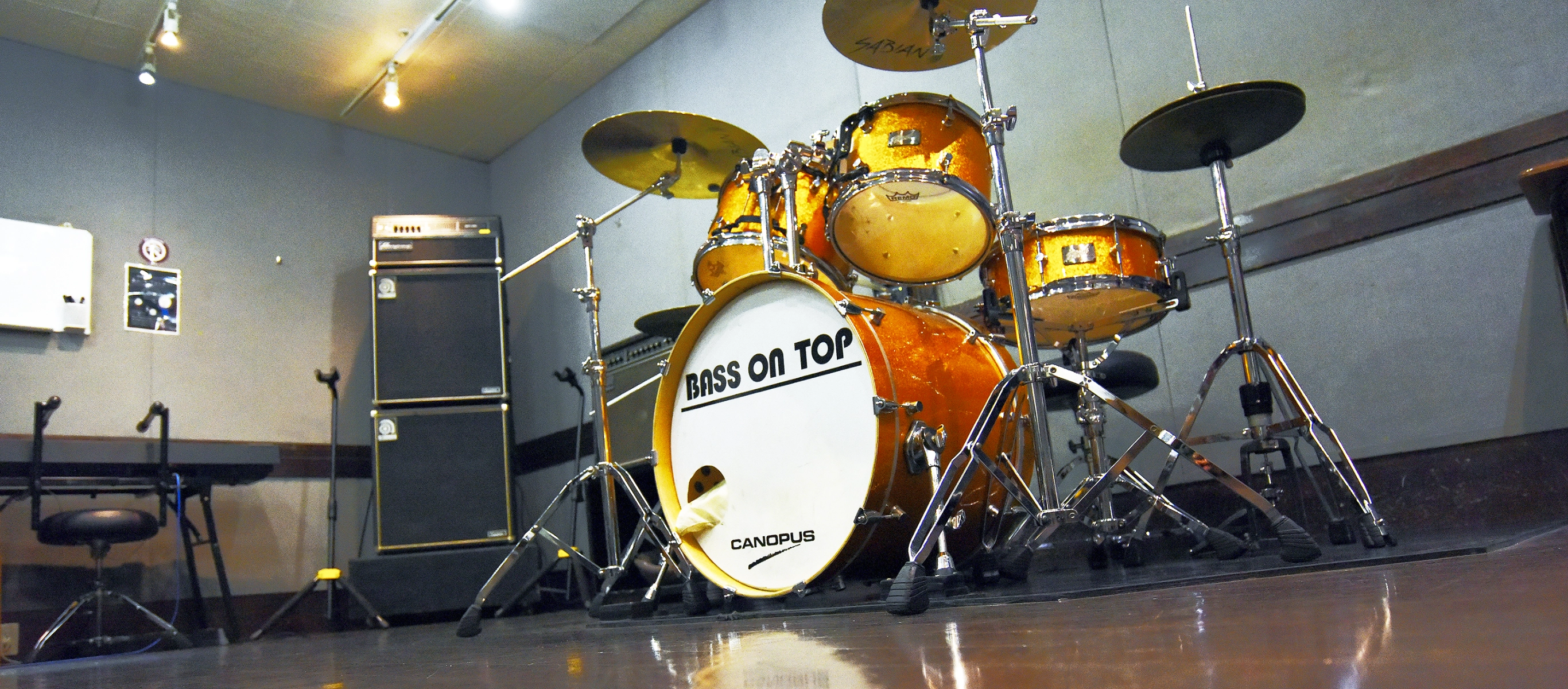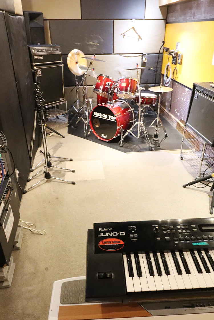 バンドスタジオBASS ON TOPは、良質なサウンドで皆様が全力で打ち込める設備、機材を整えております。ライブ前のバンドリハーサル、ドラムやギター・ベースなど楽器の個人練習、ボーカルやアカペラ練習、また音楽レッスンやサークル活動の会場として、プロからアマチュアまで様々な用途でご利用頂けます。
