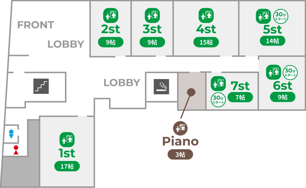 秋葉原昭和通り口店は全8部屋。