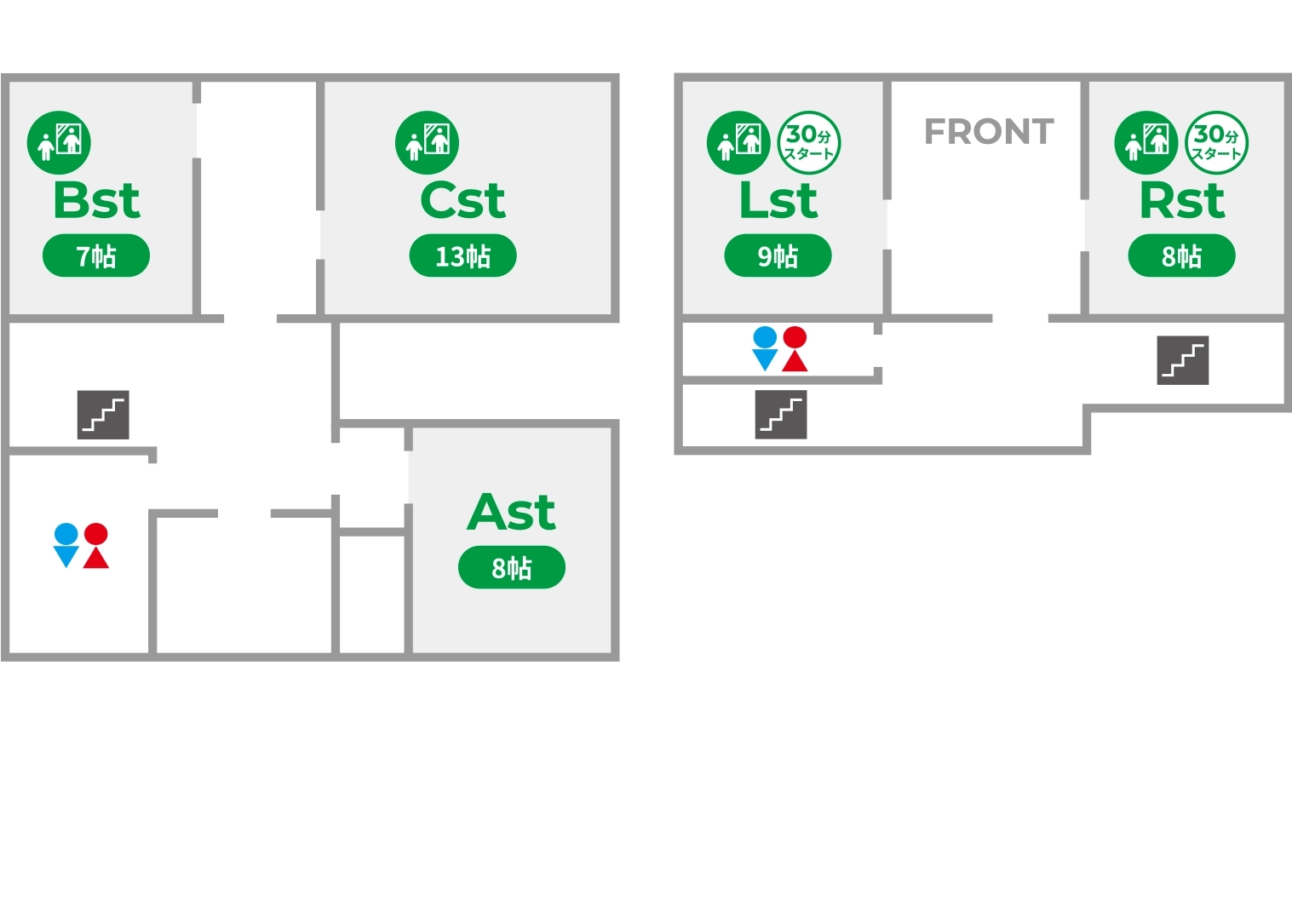 ※「30分スタート」のアイコンがない部屋については「00分スタート」になります。