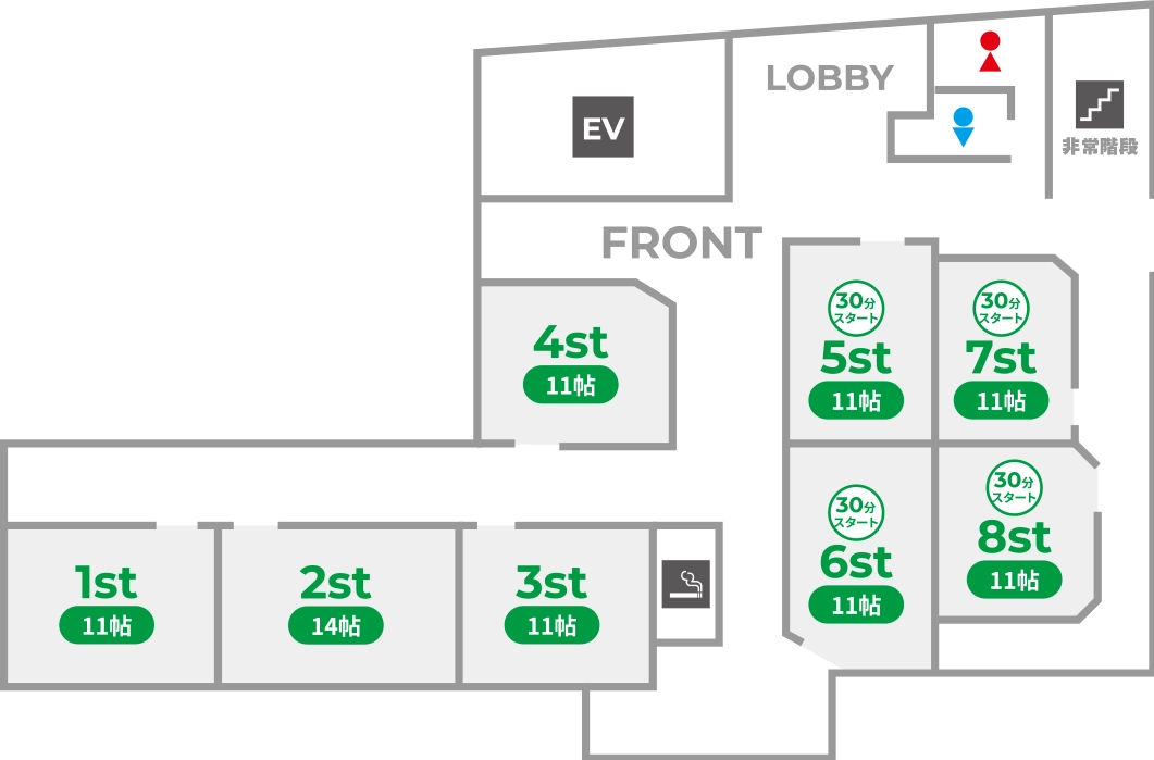 ※「30分スタート」のアイコンがない部屋については「00分スタート」になります。 30分スタートとは