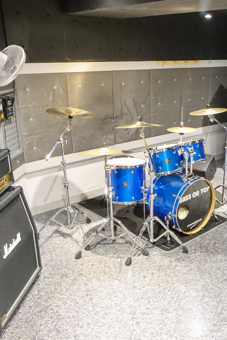 バンドスタジオBASS ON TOPは、良質なサウンドで皆様が全力で打ち込める設備、機材を整えております。ライブ前のバンドリハーサル、ドラムやギター・ベースなど楽器の個人練習、ボーカルやアカペラ練習、また音楽レッスンやサークル活動の会場として、プロからアマチュアまで様々な用途でご利用頂けます。