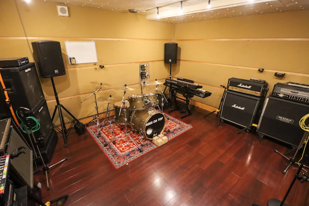 神戸三宮店で唯一Mesa Boogie/Dual Rectifierを設置した個性的なひと部屋 メンバー同士のコミュニケーションの図りやすさを重視した配置。曲制作など、じっくりと練習を進めたい方へオススメです。