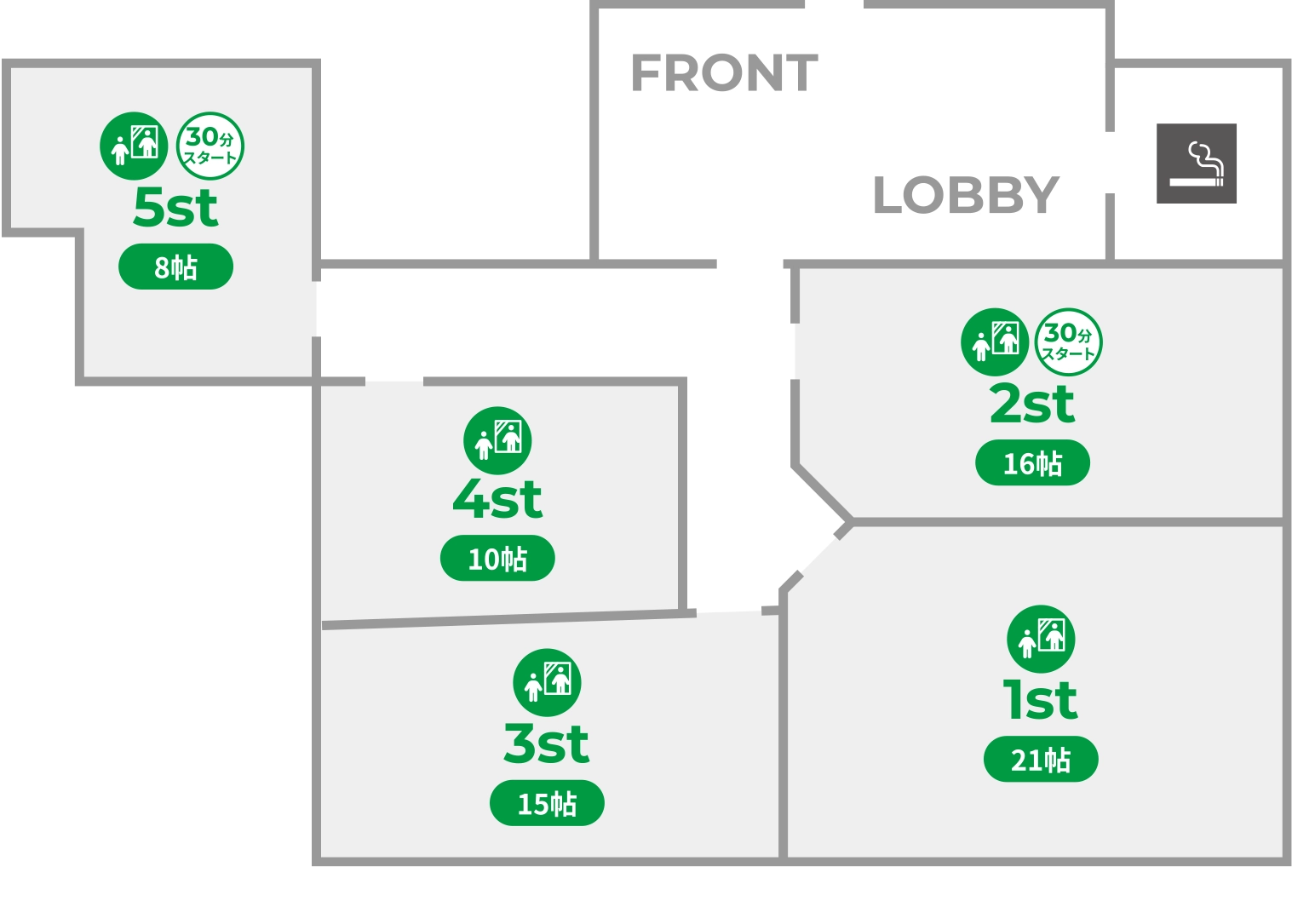 ※「30分スタート」のアイコンがない部屋については「00分スタート」になります。 30分スタートとは