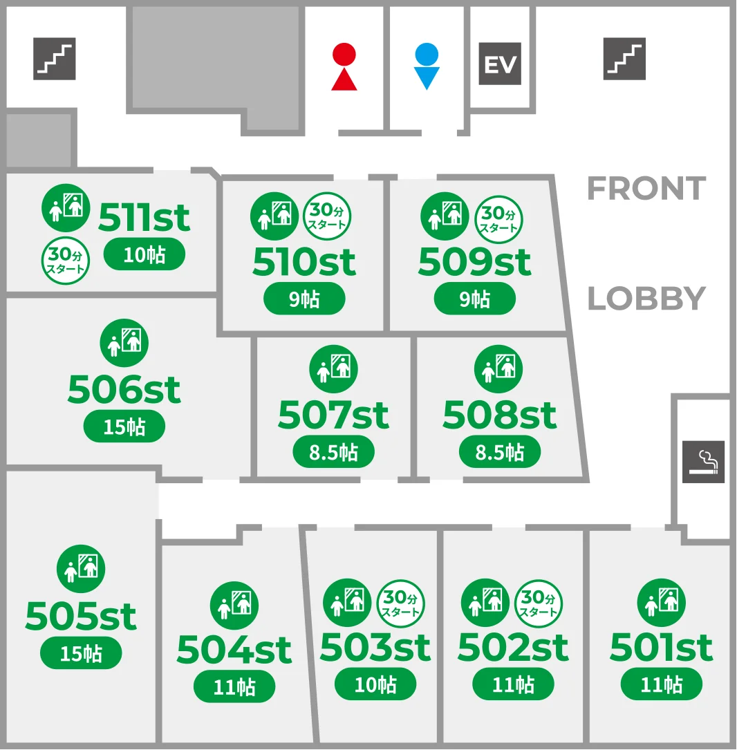 ※「30分スタート」のアイコンがない部屋については「00分スタート」になります。 30分スタートとは