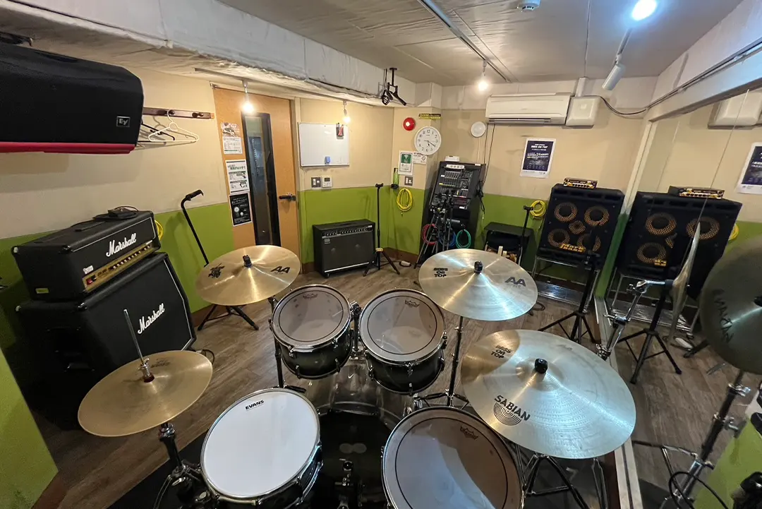 6stと同じく当店で一番小さい8帖のスタジオ。 ですが侮ることなかれ!ベースアンプにはMarkbass LITTLE MARK IIIを、ドラムには当店唯一のPearl MMXシリーズを起用し無限のサウンドメイクを可能に◎ さらに!「19:00は早いけど20:00だと少し遅い...」といった方々に朗報!30分スタートのお部屋が皆様のご希望を叶えます◎ 是非一度体感してください! ※電子ピアノ(88鍵)は有料レンタル(1回¥220-)となります。