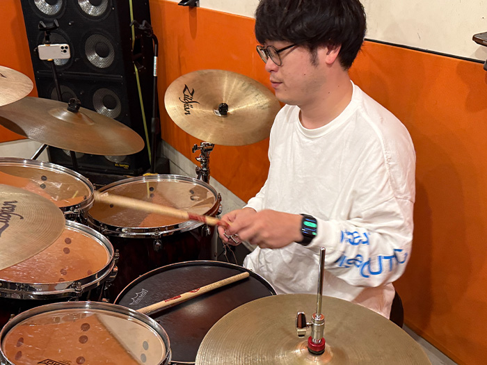邦楽ロック、J-POPの影響を受け中学の同級生とコピーバンドを組み、16歳からドラムを始める。