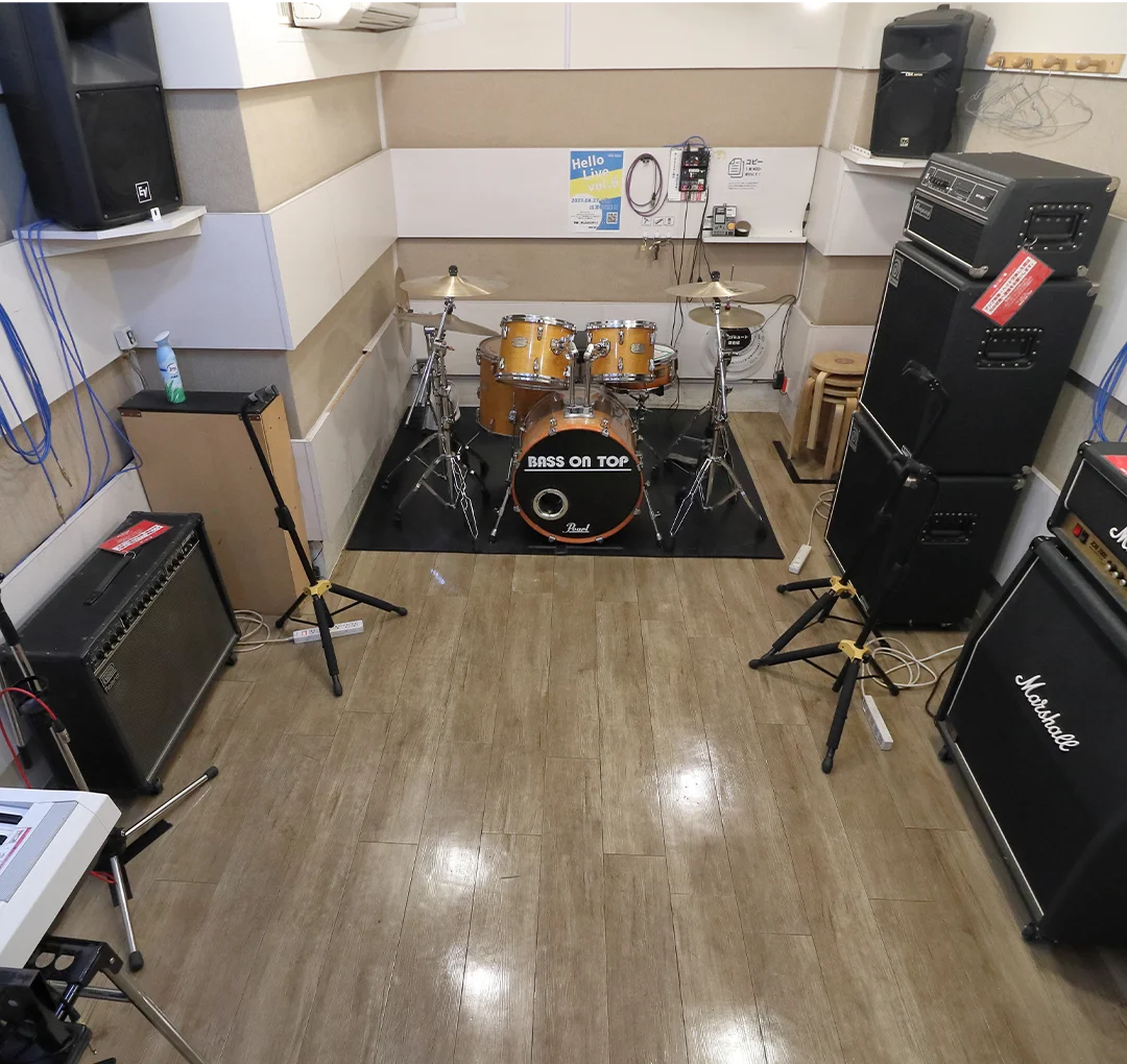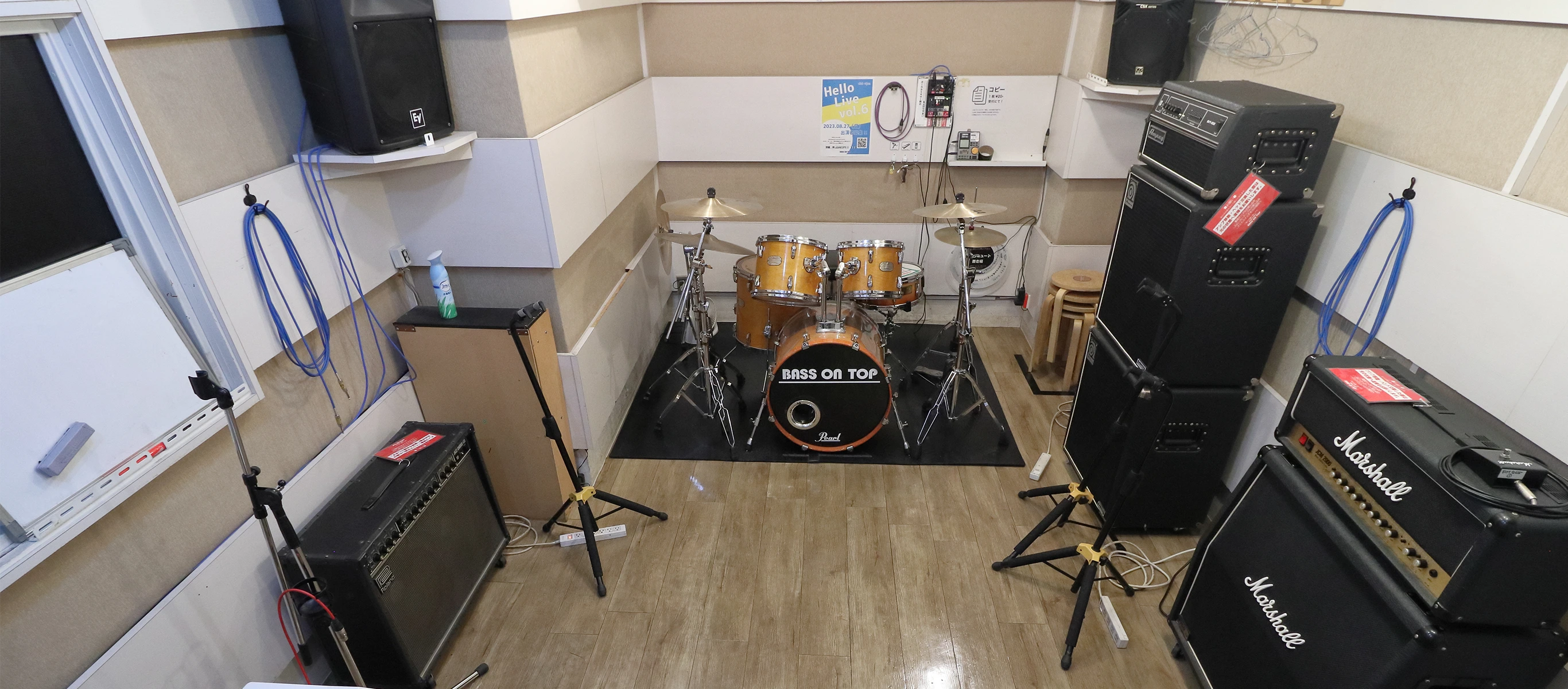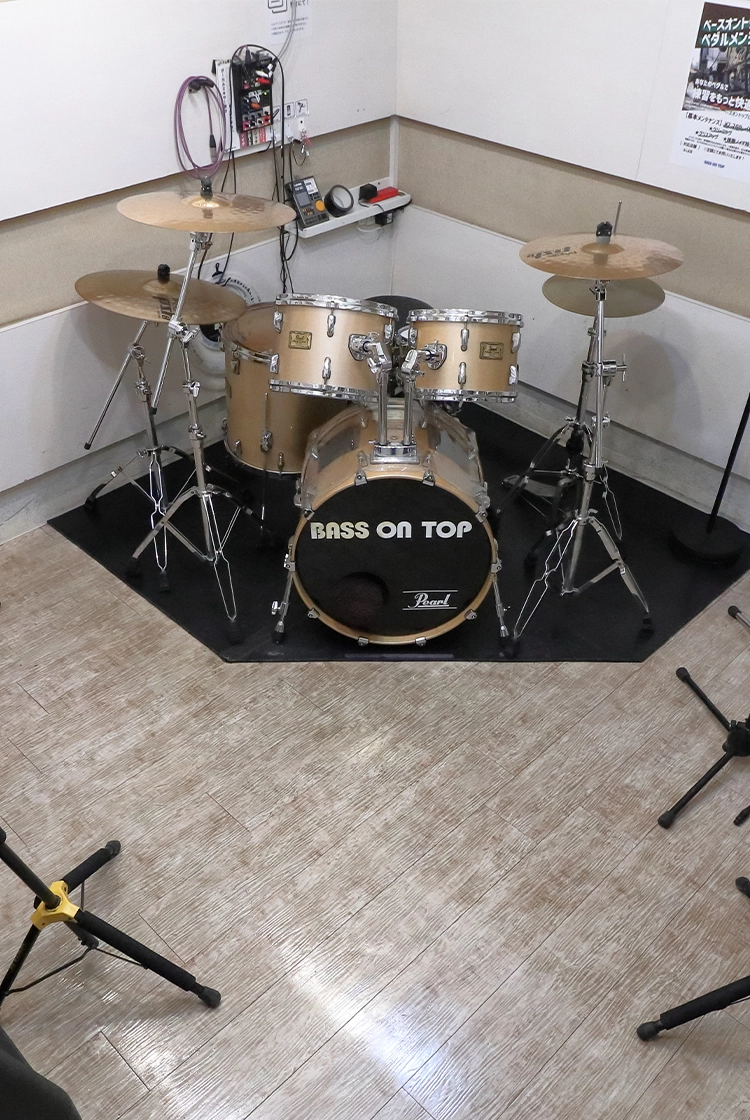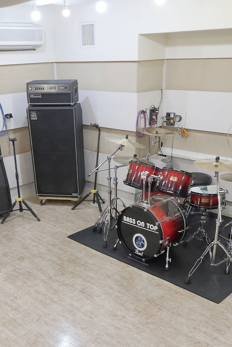 バンドスタジオBASS ON TOPは、良質なサウンドで皆様が全力で打ち込める設備、機材を整えております。ライブ前のバンドリハーサル、ドラムやギター・ベースなど楽器の個人練習、ボーカルやアカペラ練習、また音楽レッスンやサークル活動の会場として、プロからアマチュアまで様々な用途でご利用頂けます。